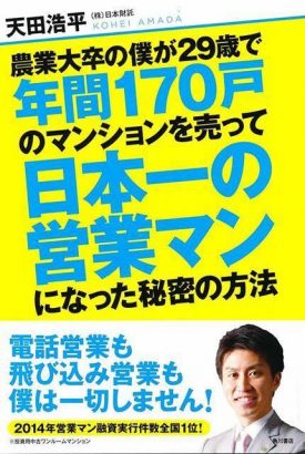 著書に「農業大卒の僕が29歳で年間170戸のマンションを売って日本一の営業マンになった秘密の方法」がある。