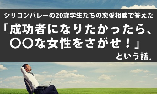 →シリコンバレーの20歳学生たちの恋愛相談で答えた「成功者になりたかったら、〇〇な女性をさがせ!」という話。