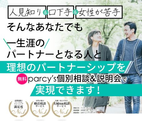 - 7 うまくいかない恋愛を卒業して1年以内に結婚する!parcy's個別相談&説明会はこちら