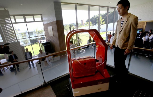 部屋までは、荷物を運んでくれるロボットが登場する。