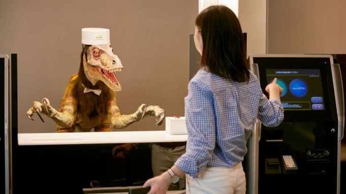 フロント係のロボットは、女性タイプと恐竜タイプの2種類がいる。意外にも女性ロボットより、恐竜ロボットのほうが人気だという。ロボット接客ではエンターテイメント性が大事なのかもしれない。
