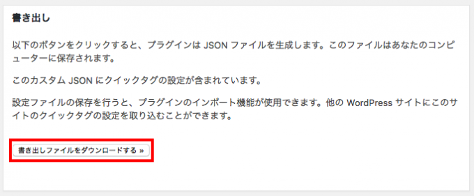 「書き出しファイルをダウンロードする」をクリックすると、今使用中のAddQuicktagのデータがダウンロードされる。