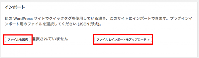 新しいWordPress(ワードプレス)のAddQuicktagの設定画面に行き(もちろんこちらのWordPress(ワードプレス)にもAddQuicktagがインストールしてあることが前提だ。)「インポート」で、先ほどダウンロードしたエクスポートデータを選択し、インストールする。