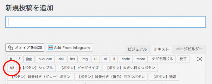 先ほど設定した「<h3>」のボタンが表示されているのがわかる。