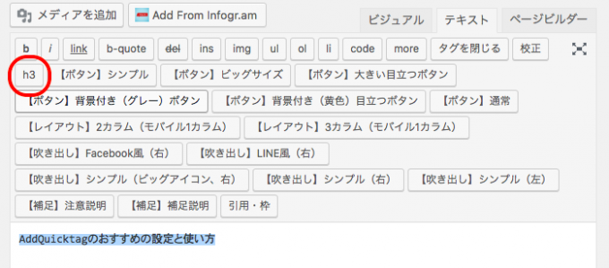 試しに「AddQuicktagのおすすめの設定と使い方」という見出しでやってみよう。
