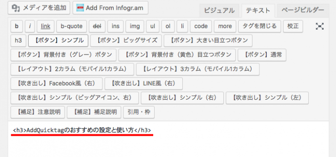 こちらの説明でAddQuicktagがいかに便利なプラグインかお分かりいただけただろうか。