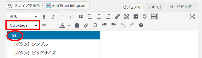 「Quicktags」というプルダウンメニューが表示されるはずだ。