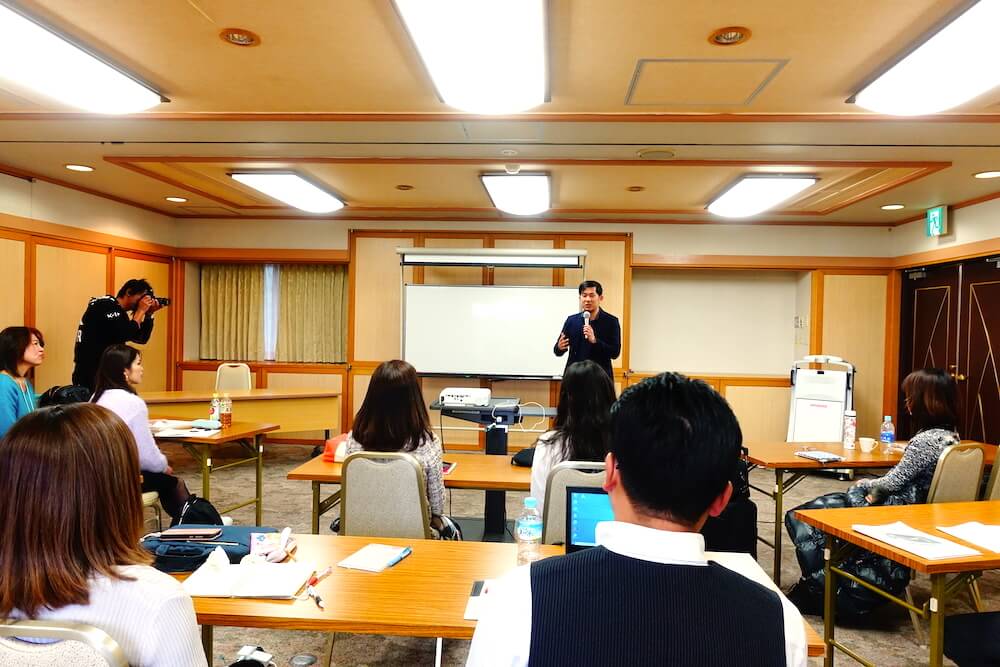 合宿の後半は、インストラクター講師の坂東さんによる口コミ・紹介を生み出す秘訣の講座だった。今回の期は、ウェブ集客よりもリアル集客をしていきたいという受講生が多かったので、リアル集客の極意を坂東さんが語ってくれた。