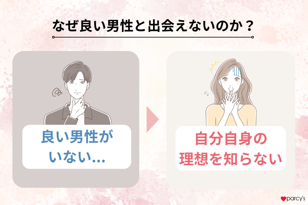 よく「いい人がいたら結婚したい」「結婚したいけどいい人がいない」ということを言う女性は多いけど、実はそれは良い男性と出会ってないのではなくて、自分の理想を知らないからなんだ。