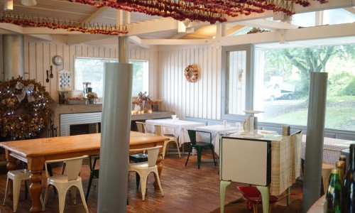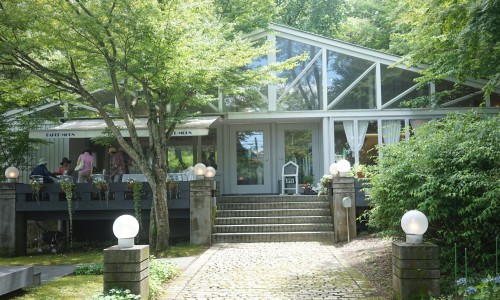 ロッジ風のおしゃれなたたずまいのカフェ&レストラン。