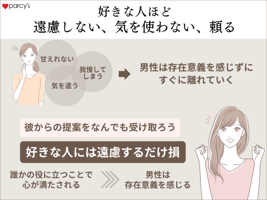 parcy’sに来る女性の中で多い相談として、「好きな人ほど頼ることができません」と悩む人は多い。