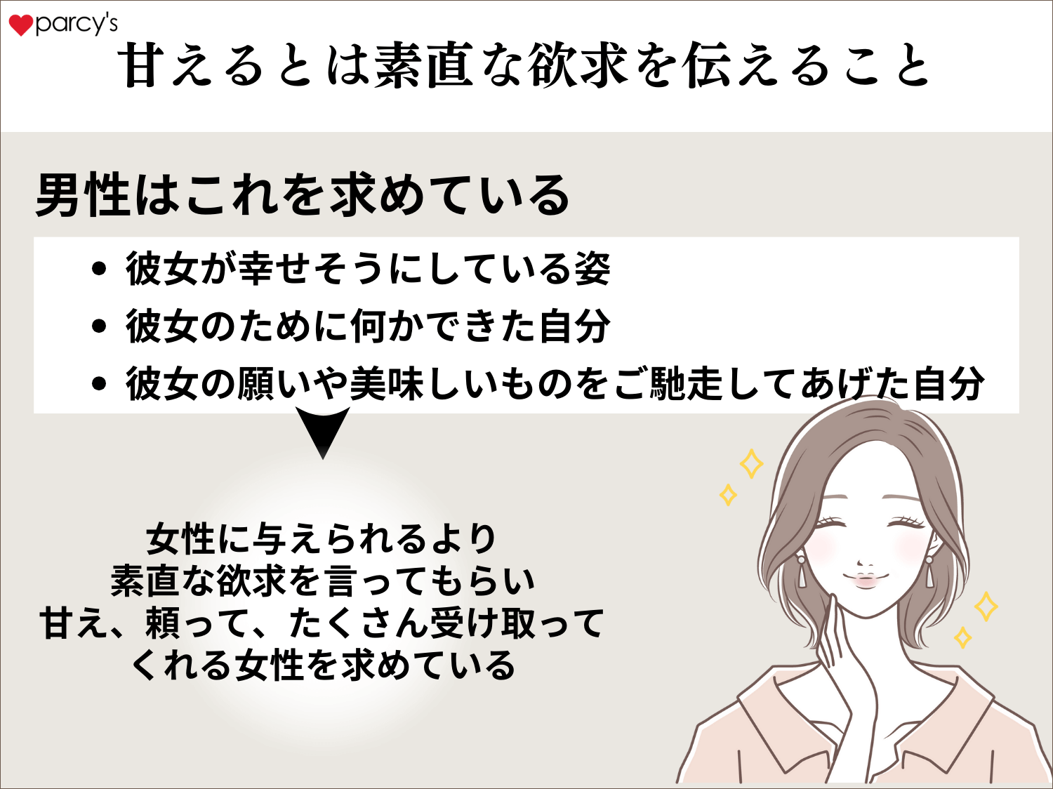 男性は大切に想う女性に甘えられ、頼られることで自信を身に付け、女性を幸せにできていることに自分自身の存在価値を感じる生き物だ。