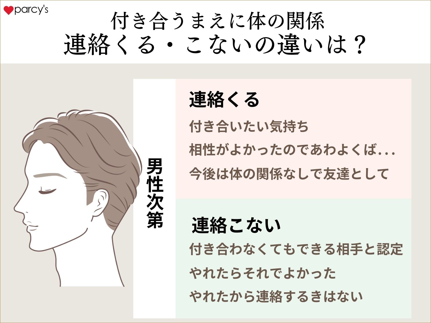 本気で「付き合う前に体の相性を確かめたい」という気持ちがあって、結果、相性もよかったとなると、その後の前向きな関係に向けての連絡がくることだろう。