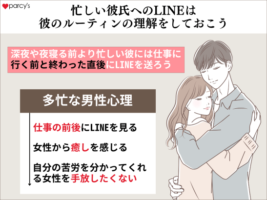 その時に、そうやって前向きになっている彼の背中を押すこと、忙しくても彼を責めないで、会えない時間に男性が仕事に打ち込んできることに理解を示し、相手を信頼してあげることが、愛を育てるということになる、と知っておこう。
