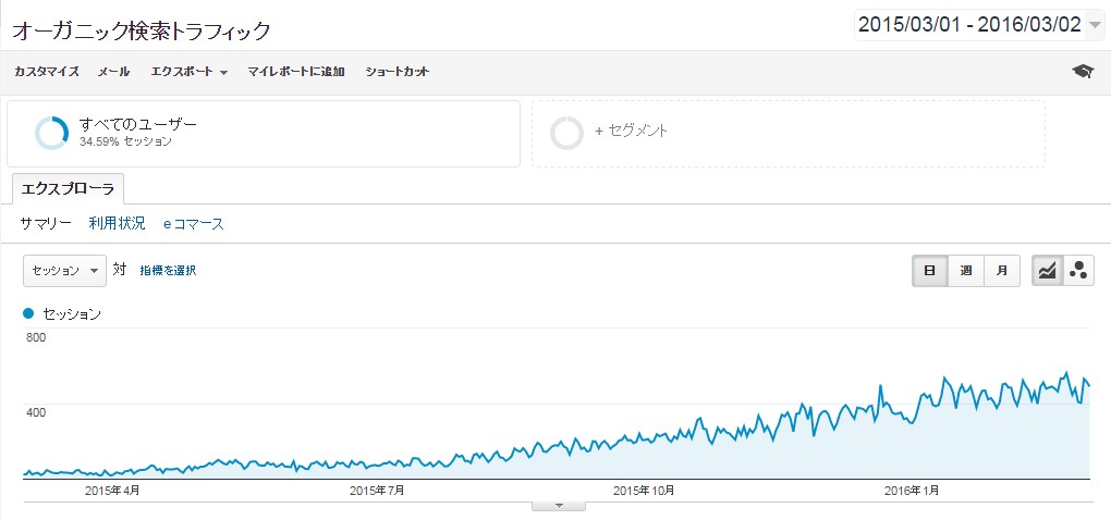 Googleからの検索流入結果は、右肩上がりであがっている。