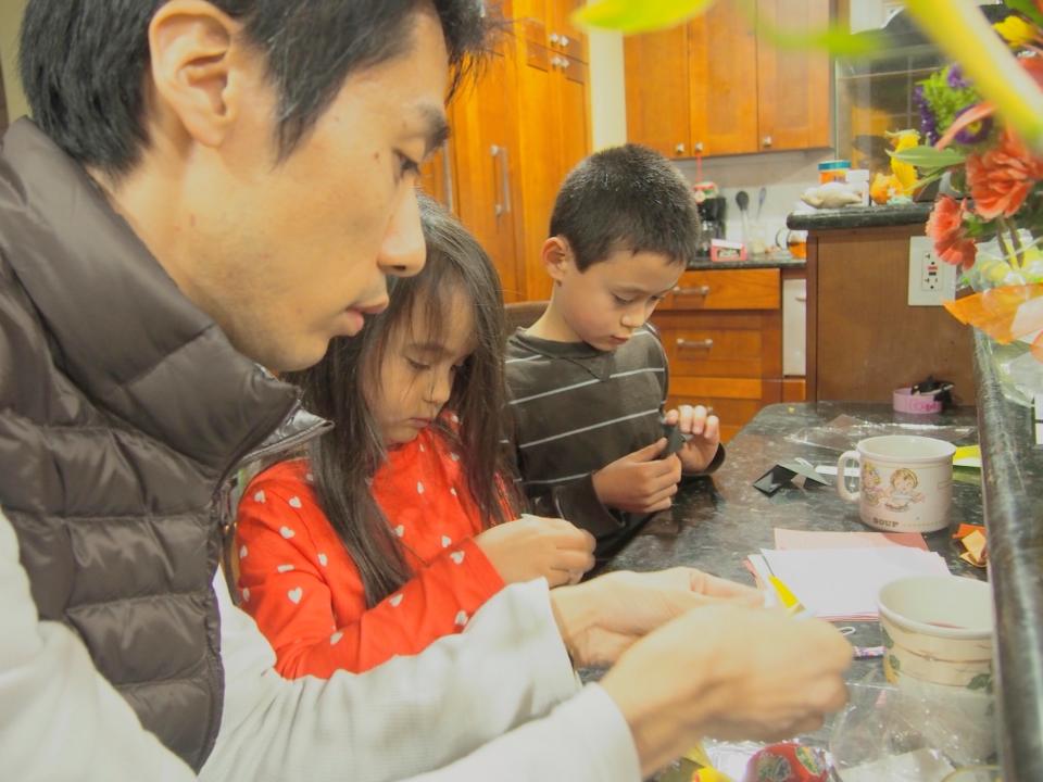 そうめいさんが、お土産に折り紙を選んでくれていて、折り方を教えてあげていました。