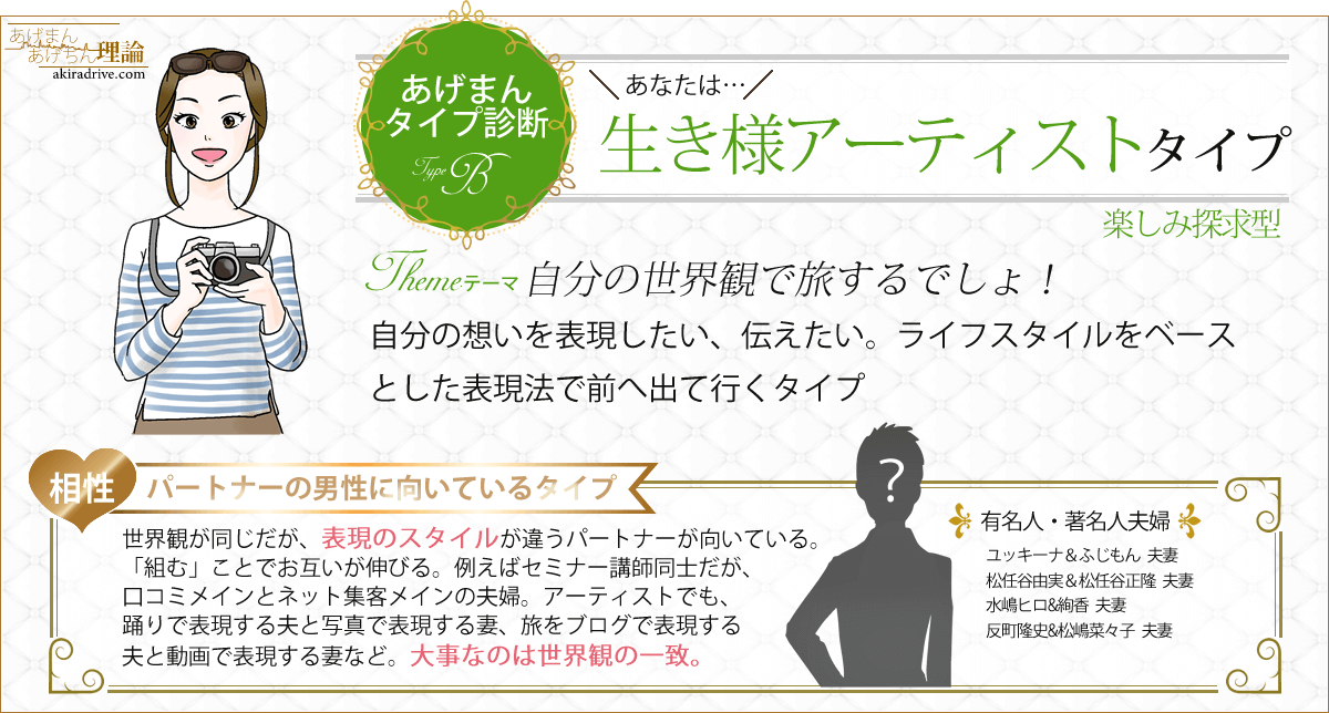 あなたは「生き様アーティストあげまんタイプ」です!