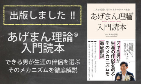 今回、「あげまん 理論入門読本–できる男が生涯の伴侶を選ぶそのメカニズムを徹底解説」という本を出版しました。 これはセミナーにきた人には配っていた「あげまん 理論小冊子」をブラッシュアップして分かりやすくした…