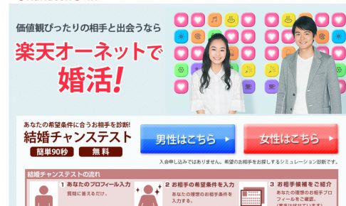 今日は楽天オーネットの結婚チャンステストのやり方を解説する。 こちらのテストは楽天オーネットのマッチングをお試しできるテストになっている。 登録会員の中で自分にあった会員はいるか、どんな人とマッチングされるかがわかる。 …