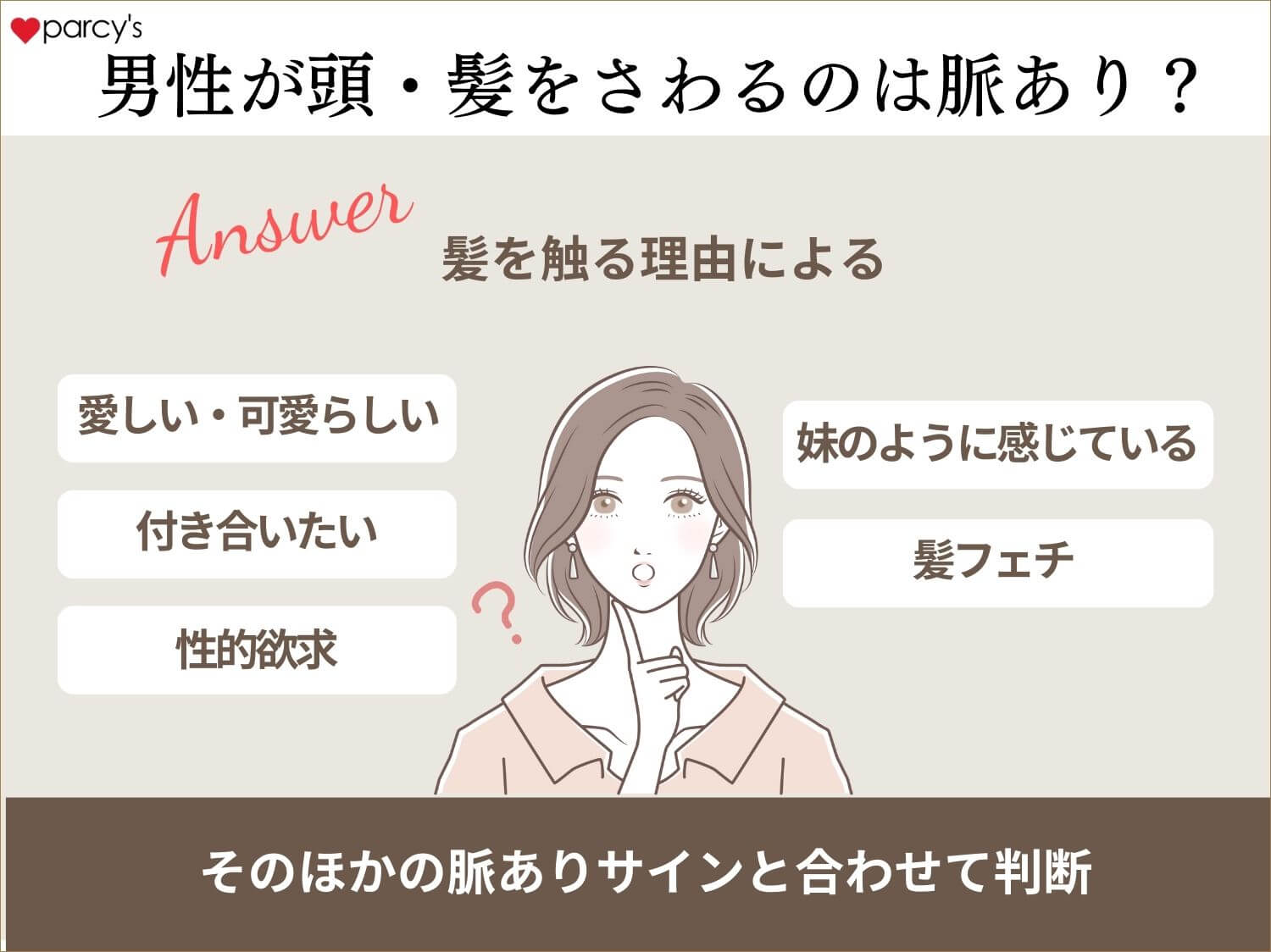 ほかの男性心理も知ってみたい、と思うなら、ぜひ「parcy’s」の世界に一度足を運んでみてほしい。男性心理を読み解き、正しく理解しながら相手との関係を高めていく方法について様々な記事で解説している