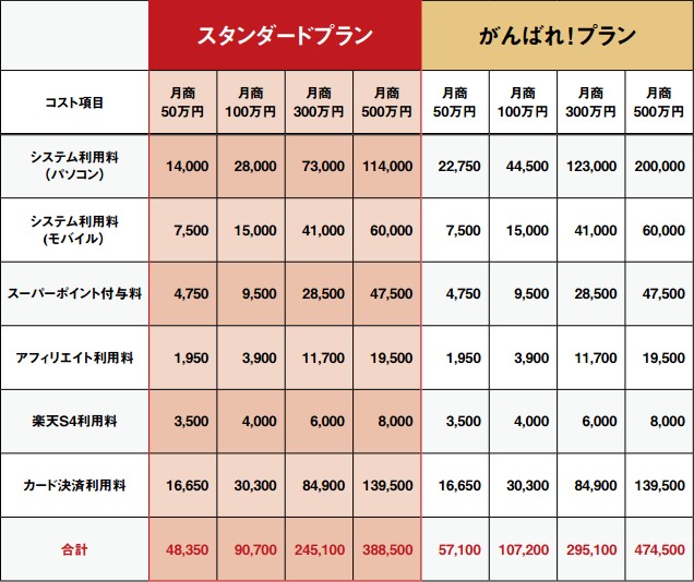 売上があがっても固定費が一定の割合で楽天に支払う必要があります。