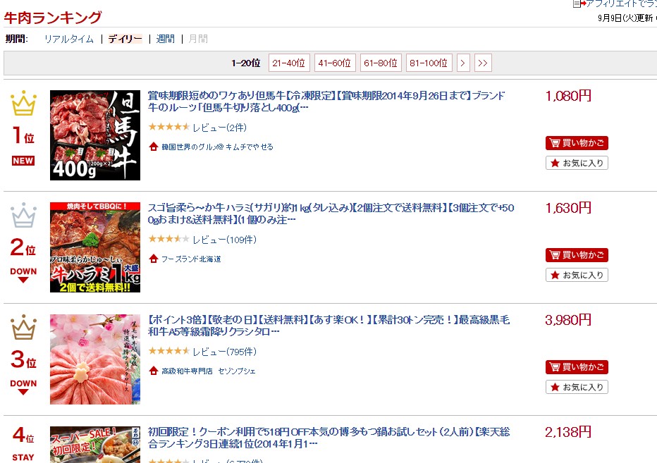 この商品一覧の検索結果において、クリックされる商品を用意することこそ楽天での売上UPの鍵だと言えると感じました。