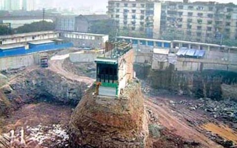 中国の土地を明け渡し拒否した人が周りだけ工事をすすめられた写真