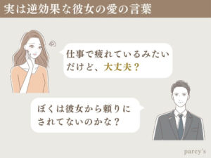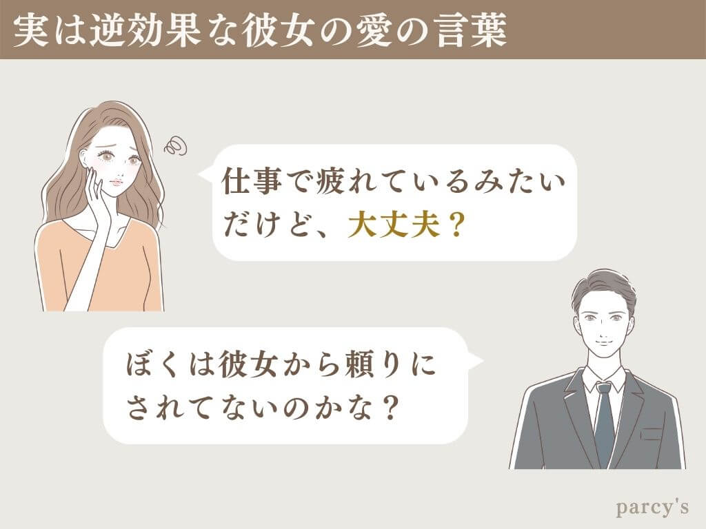 2022.12.13 AKIRA 逆効果な彼女の愛の言葉 FacebookでシェアTwitterでシェア Tweet FacebookでシェアTwitterでシェア parcy's note(パーシーズノート) > Full width page > parcy’sメソッド > 自分の想いを伝える技術 > 【男性心理・図解】実は逆効果!男性が苦しくなってしまう彼女の「愛の言葉」とは? > 逆効果な彼女の愛の言葉