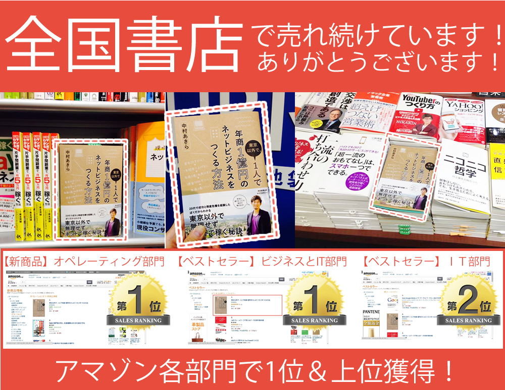 ぼくがこの本を通して紹介するのは、東京以外の好きな場所で成功させる、年商1億円のネットビジネスの起業だ。