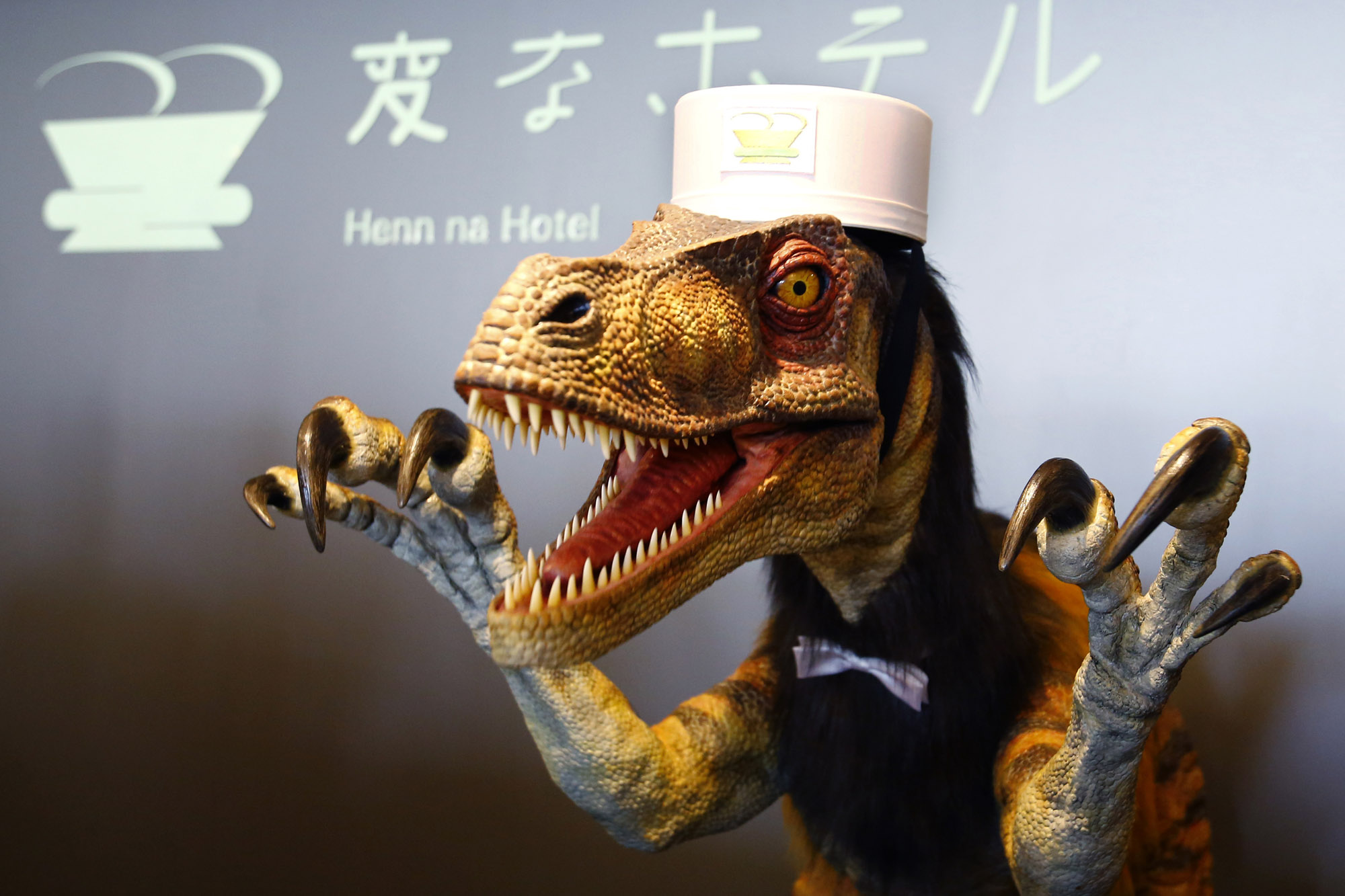 フロント係のロボットは、女性タイプと恐竜タイプの2種類がいる。意外にも女性ロボットより、恐竜ロボットのほうが人気だという。ロボット接客ではエンターテイメント性が大事なのかもしれない。
