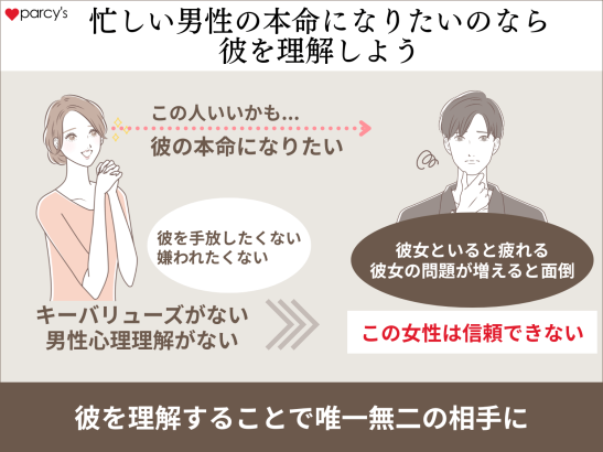 だけど、忙しい男性の本命になりたいなら、まず彼を理解しようとすることが大切だ。