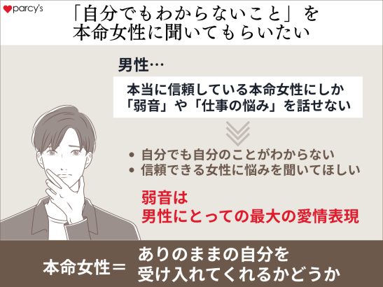 男性は本当に信頼している本命女性にしか「弱音」や「仕事の悩み」を話せない。