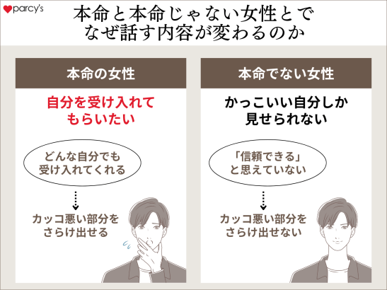 男性が本命とそうじゃない女性とで話す内容を変えるのは、それぞれに求める欲求が全く異なるからだ。