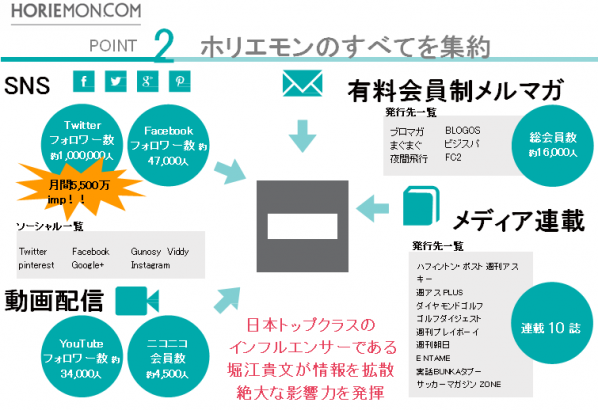 堀江さんというスターブランドから、様々なメディアを運営してメインサイトである「ホリエモンドットコム」に集約させてある。