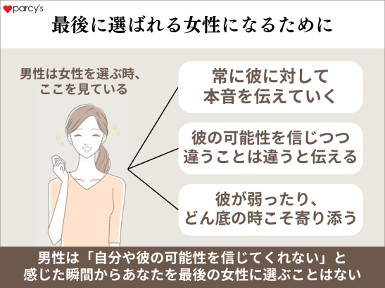 そしてそれは、ただ単に相手に選ばれる女性になるというだけではなく、自分自身も相手と深い信頼関係が築けている状態でもあり、