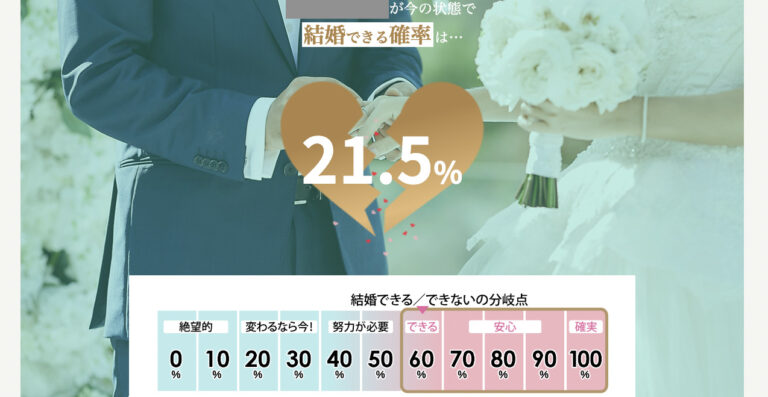 結婚力を上げていくことで、結婚確率も上げていけることが分かる診断結果となっている。