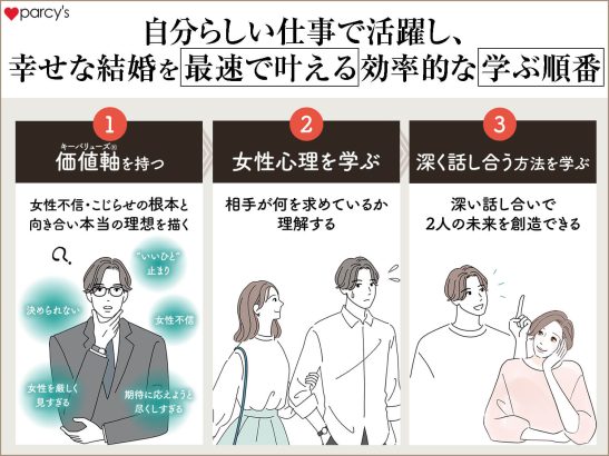 parcy'sで学べば、世界で一番大好きな女性と結婚できる自分になることできる。