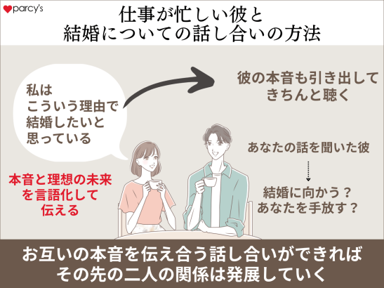 では仕事が忙しい彼とどのように結婚について話し合っていけばいいのだろうか。