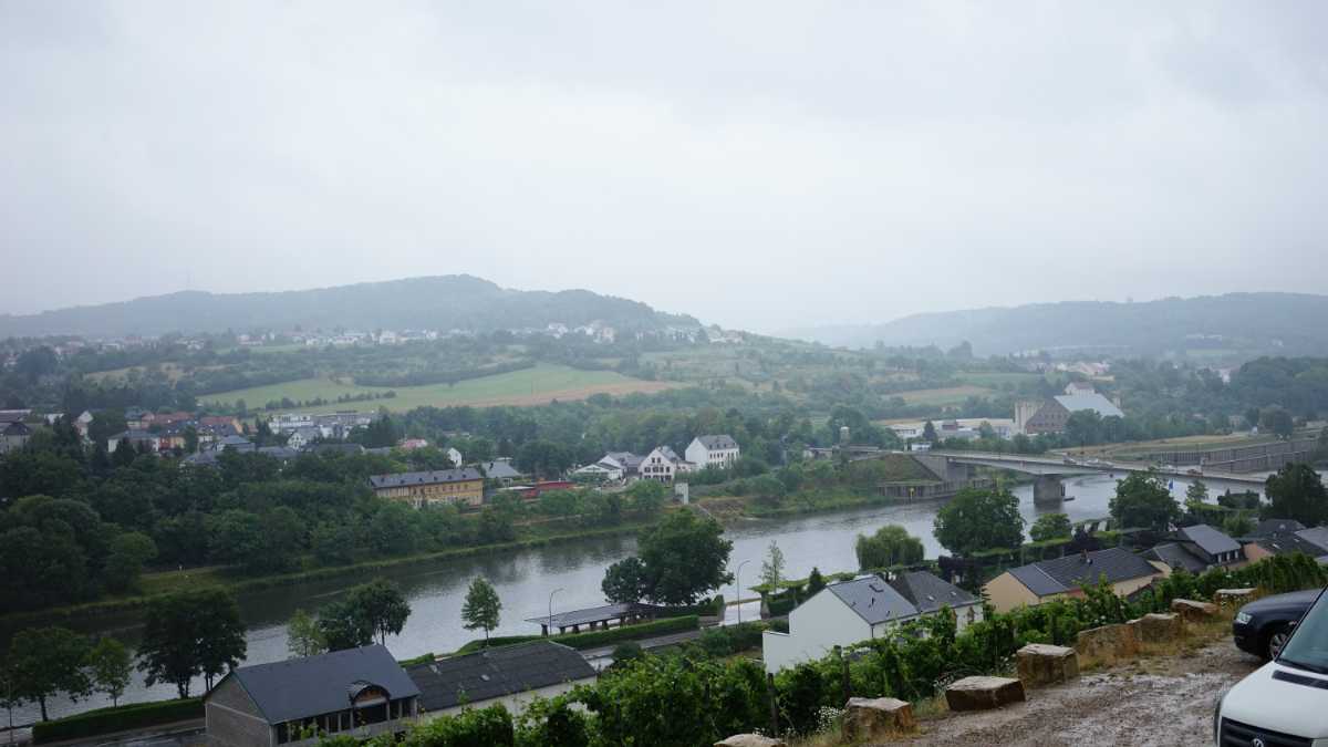 曇っていましたが、モーゼル川を起点に、手前がルクセンブルグ、左がフランス、右側がドイツになります。