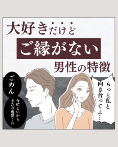 2023.07.21 AKIRA 1 FacebookでシェアTwitterでシェア Tweet FacebookでシェアTwitterでシェア parcy's note(パーシーズノート) > Full width page > parcy’sメソッド > 自己肯定感を高める方法 > 【マンガでわかる】大好きだけどご縁がない男性の特徴 > 1