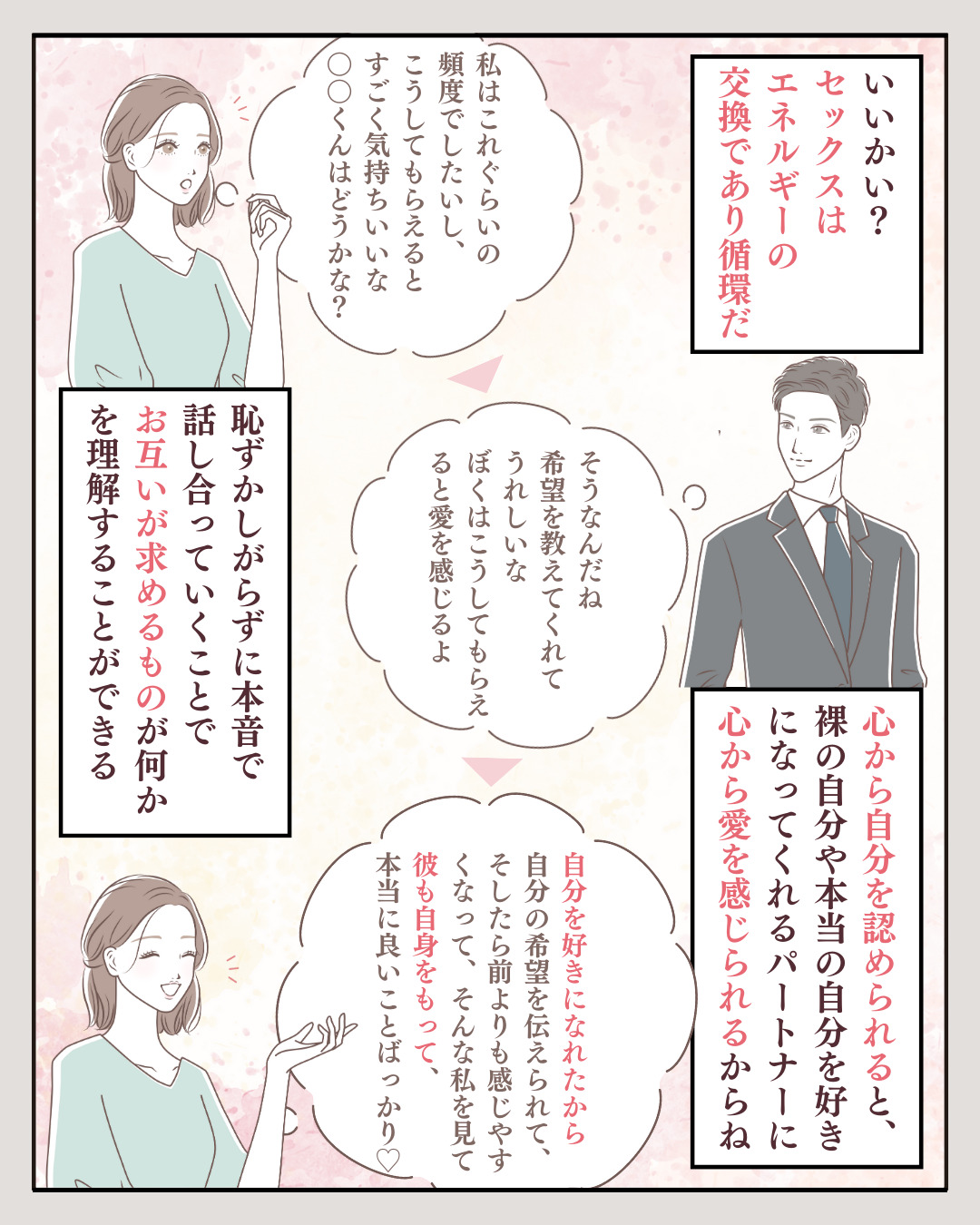 2023.08.12 AKIRA 9 FacebookでシェアTwitterでシェア Tweet FacebookでシェアTwitterでシェア parcy's note(パーシーズノート) > Full width page > parcy’sメソッド > 自己肯定感を高める方法 > 【マンガでわかる男性心理】男性が一生離せない体の相性とは? > 9