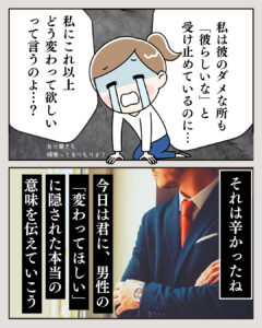 2023.08.12 AKIRA 12 FacebookでシェアTwitterでシェア Tweet FacebookでシェアTwitterでシェア parcy's note(パーシーズノート) > Full width page > parcy’sメソッド > 自己肯定感を高める方法 > 【マンガでわかる男性心理】あのね、男性からの「変わってほしい」は、「幸せでいてほしい」というメッセージなんだよ」 > 12