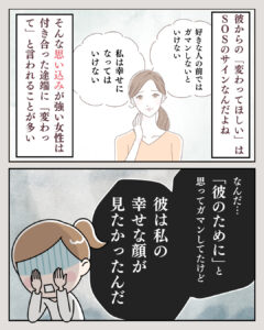 2023.08.12 AKIRA 14 FacebookでシェアTwitterでシェア Tweet FacebookでシェアTwitterでシェア parcy's note(パーシーズノート) > Full width page > parcy’sメソッド > 自己肯定感を高める方法 > 【マンガでわかる男性心理】あのね、男性からの「変わってほしい」は、「幸せでいてほしい」というメッセージなんだよ」 > 14