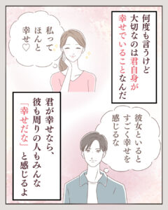 2023.08.12 AKIRA 15 FacebookでシェアTwitterでシェア Tweet FacebookでシェアTwitterでシェア parcy's note(パーシーズノート) > Full width page > parcy’sメソッド > 自己肯定感を高める方法 > 【マンガでわかる男性心理】あのね、男性からの「変わってほしい」は、「幸せでいてほしい」というメッセージなんだよ」 > 15