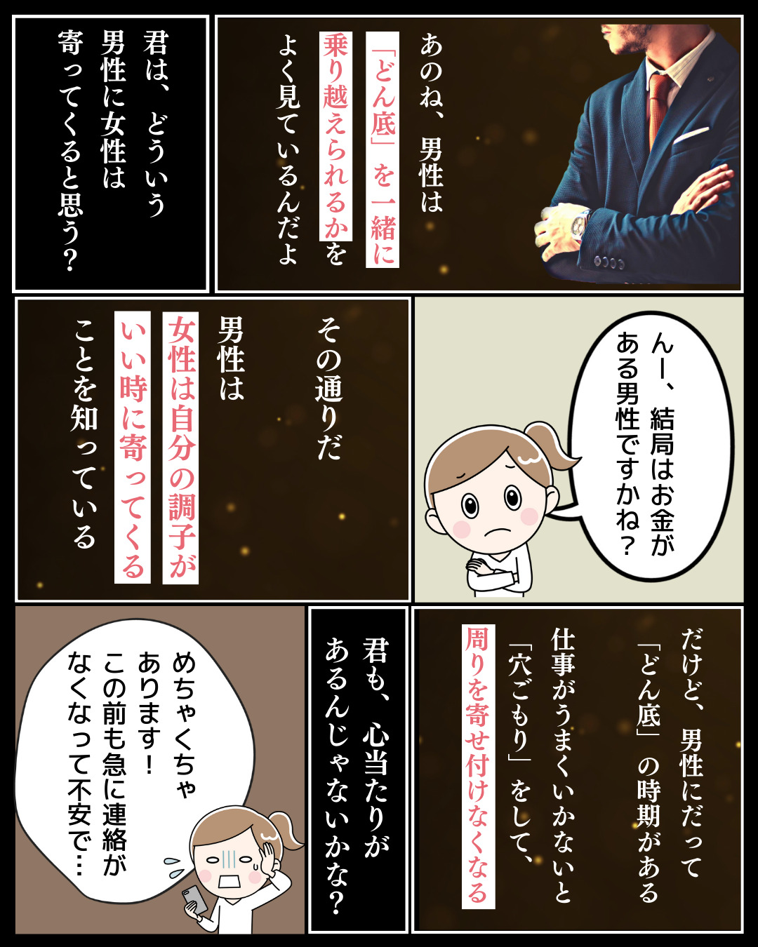 結婚における男性の地雷や女性では決して理解できない男性の本音を深く学ぶことができ、実践すれば彼が「君しか考えられない、一生一緒にいてほしい」と溺愛していきます。