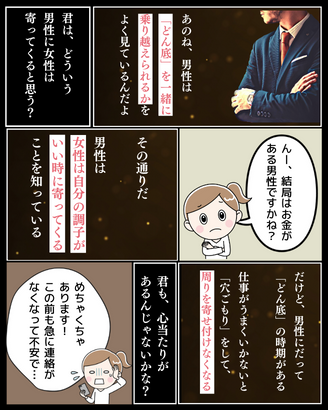 2023.06.08 AKIRA 6 FacebookでシェアTwitterでシェア Tweet FacebookでシェアTwitterでシェア parcy's note(パーシーズノート) > Full width page > parcy’sメソッド > 自己肯定感を高める方法 > 【マンガでわかる男性心理】女遊びをし尽くした男性が最後に選ぶ女性の特徴とは? > 6