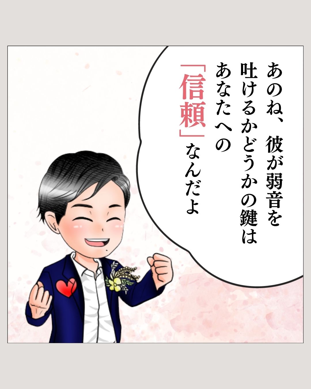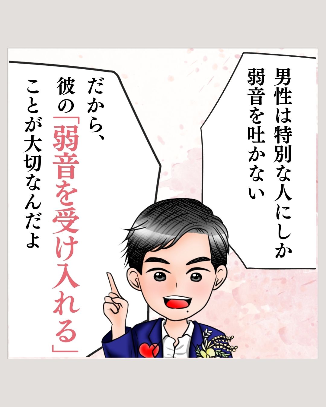 今日はあなたに、マンガで『彼が「弱音」を吐き出せる関係性の築き方』を伝えていこう。