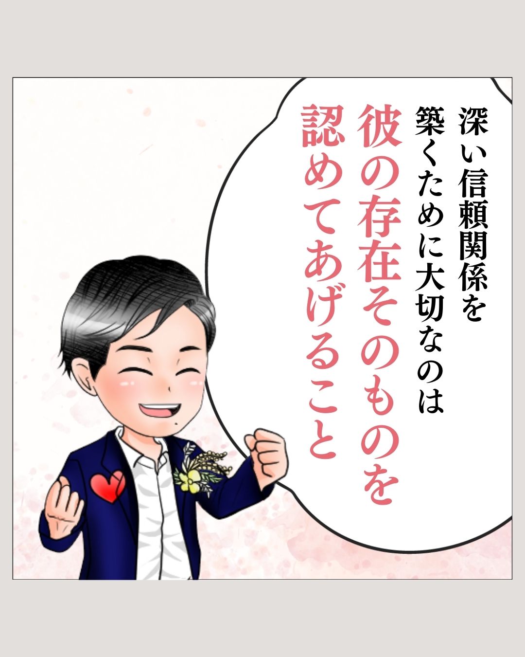 自分自身を認めてあげると、相手のことを認めてあげることができるようになる。相手を受け入れることで、深い信頼深い信頼を築けれるようになるんだよ。