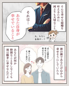 2023.08.06 AKIRA 7 FacebookでシェアTwitterでシェア Tweet FacebookでシェアTwitterでシェア parcy's note(パーシーズノート) > Full width page > parcy’sメソッド > 自己肯定感を高める方法 > 【マンガでわかる】幸せな結婚とは、お互いに「自分の船」に乗ったまま、同じ方向に進むことなんだよ > 7