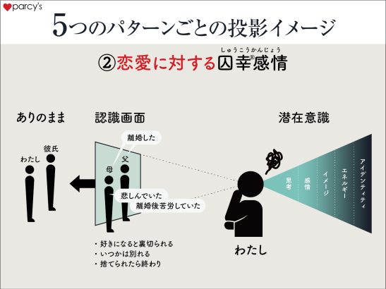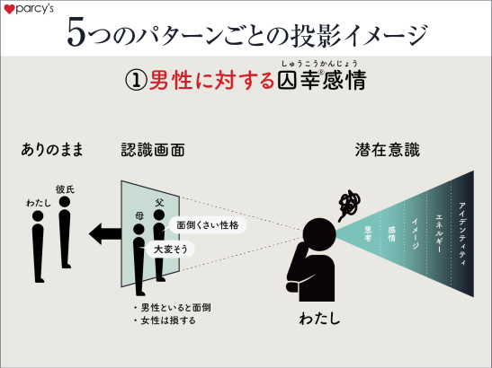 parcy’sの最初の3ヶ月でまずやるのは、自分自身の幸せな結婚へのブレーキとなっている囚幸感情®が何なのか?に向き合っていくプログラムだ。